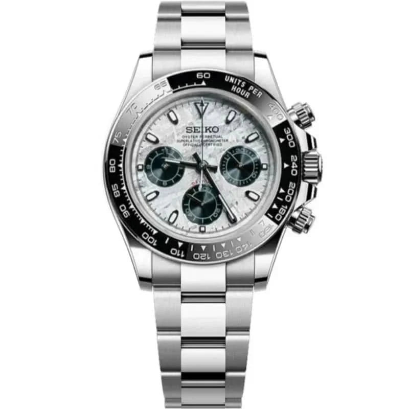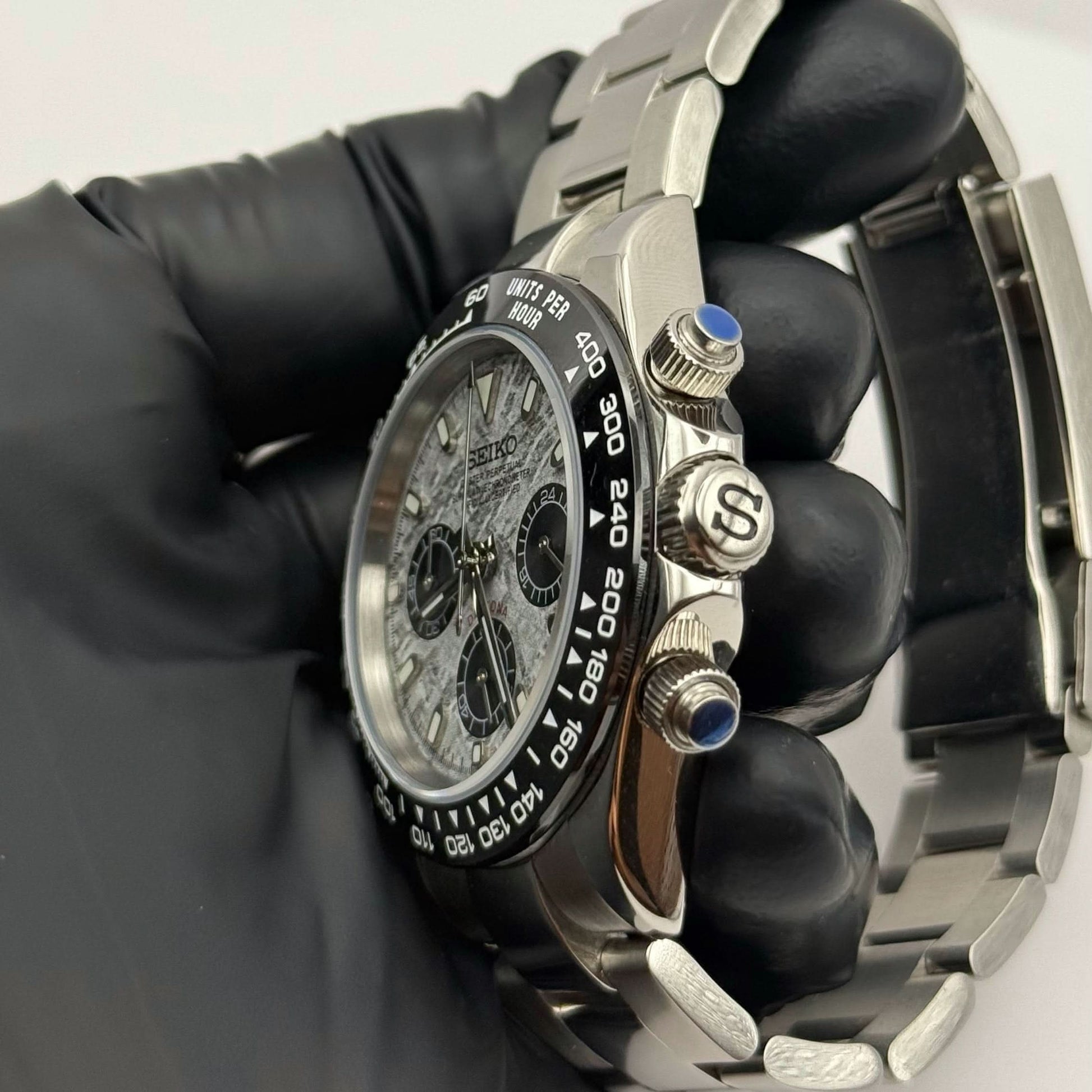 Inspired by the iconic Daytona design, and featuring the prestigious Seiko VK63 hybrid movement, we present the Seiko Mod Daytona. A 40 mm high-end quality watch combining the perfect alliance between excellence and accessibility.