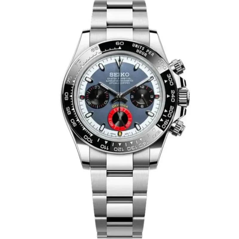 Inspired by the iconic Daytona design, and featuring the prestigious Seiko VK63 hybrid movement, we present the Seiko Mod Daytona. A 40 mm high-end quality watch combining the perfect alliance between excellence and accessibility.