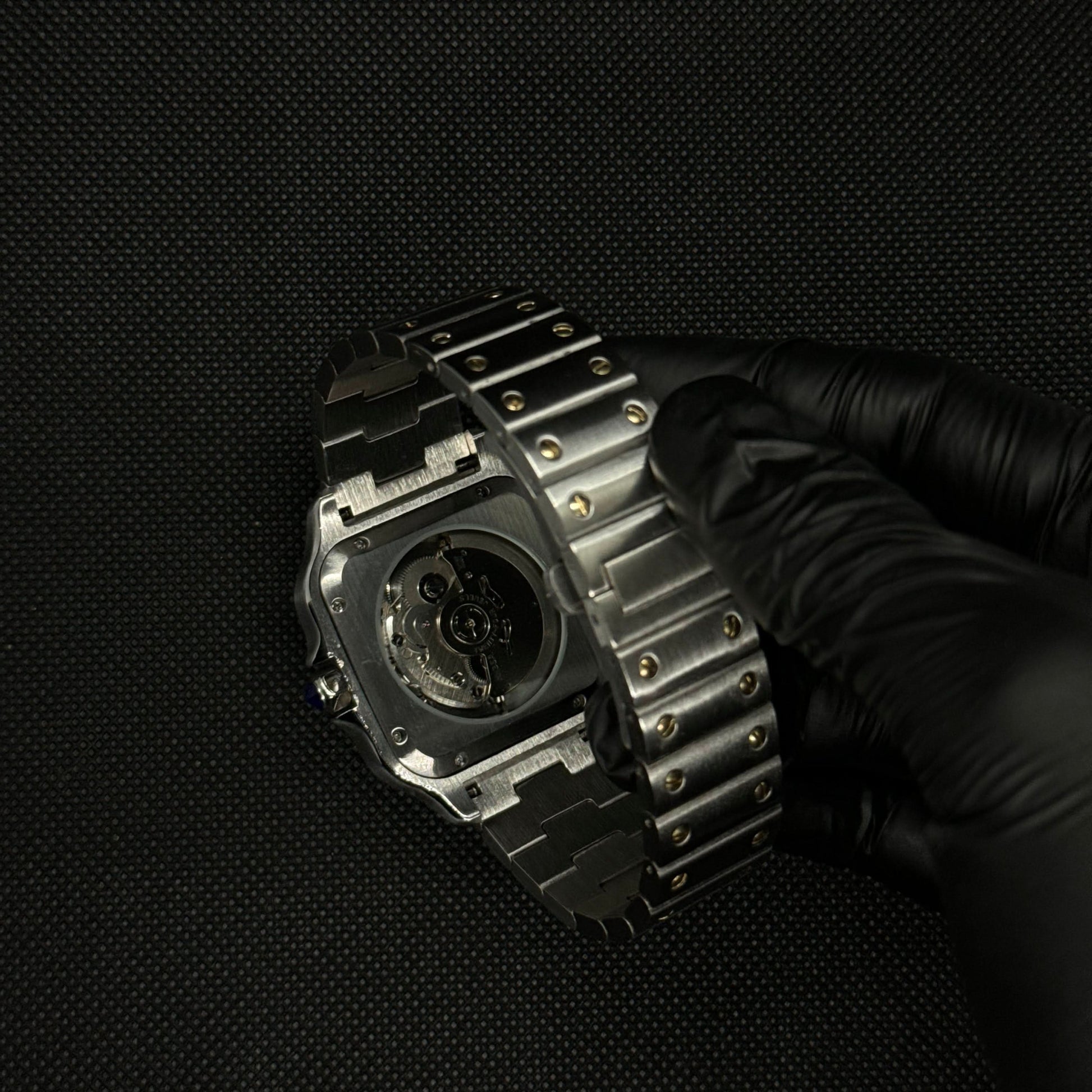 Inspired by the iconic Santos design, and featuring the prestigious Seiko NH35 automatic movement, we present the Seiko Mod Santos. A 38 mm high-end quality watch combining the perfect alliance between excellence and accessibility.