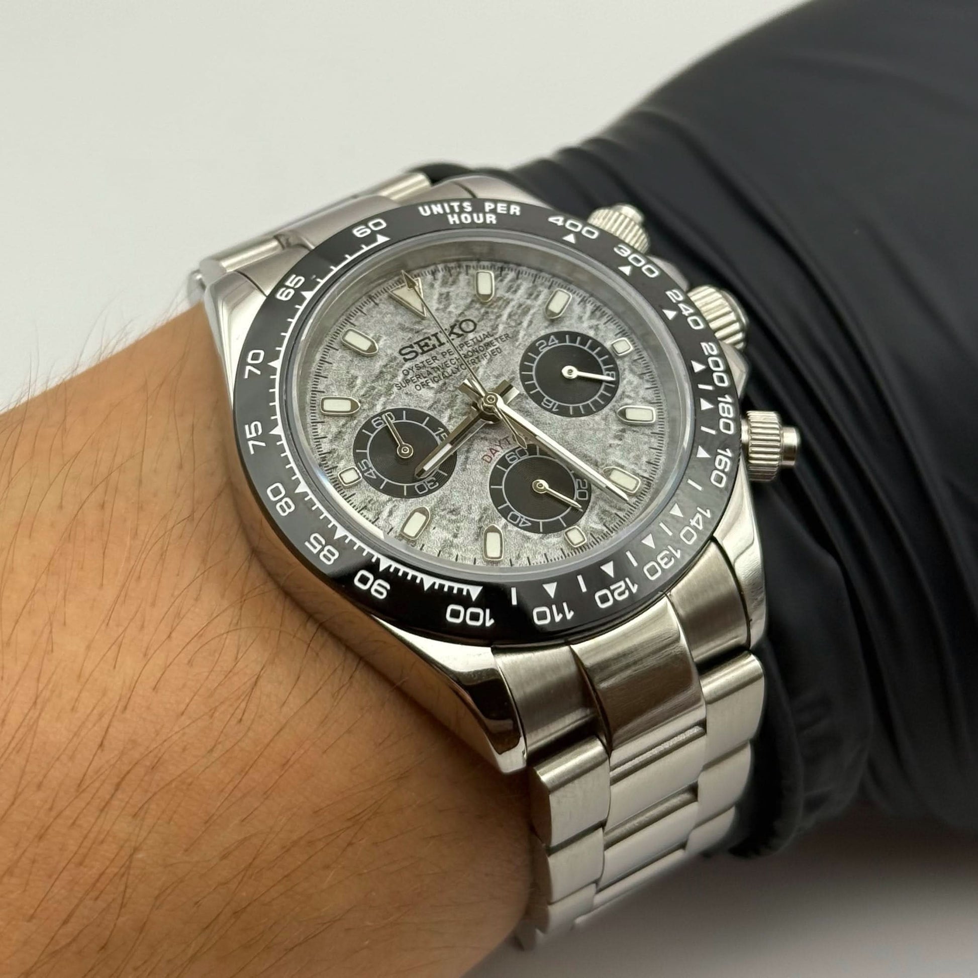 If you change your mind and the watch is unused, you can return or exchange it easily.Inspired by the iconic Daytona design, and featuring the prestigious Seiko VK63 hybrid movement, we present the Seiko Mod Daytona. A 40 mm high-end quality watch combining the perfect alliance between excellence and accessibility.