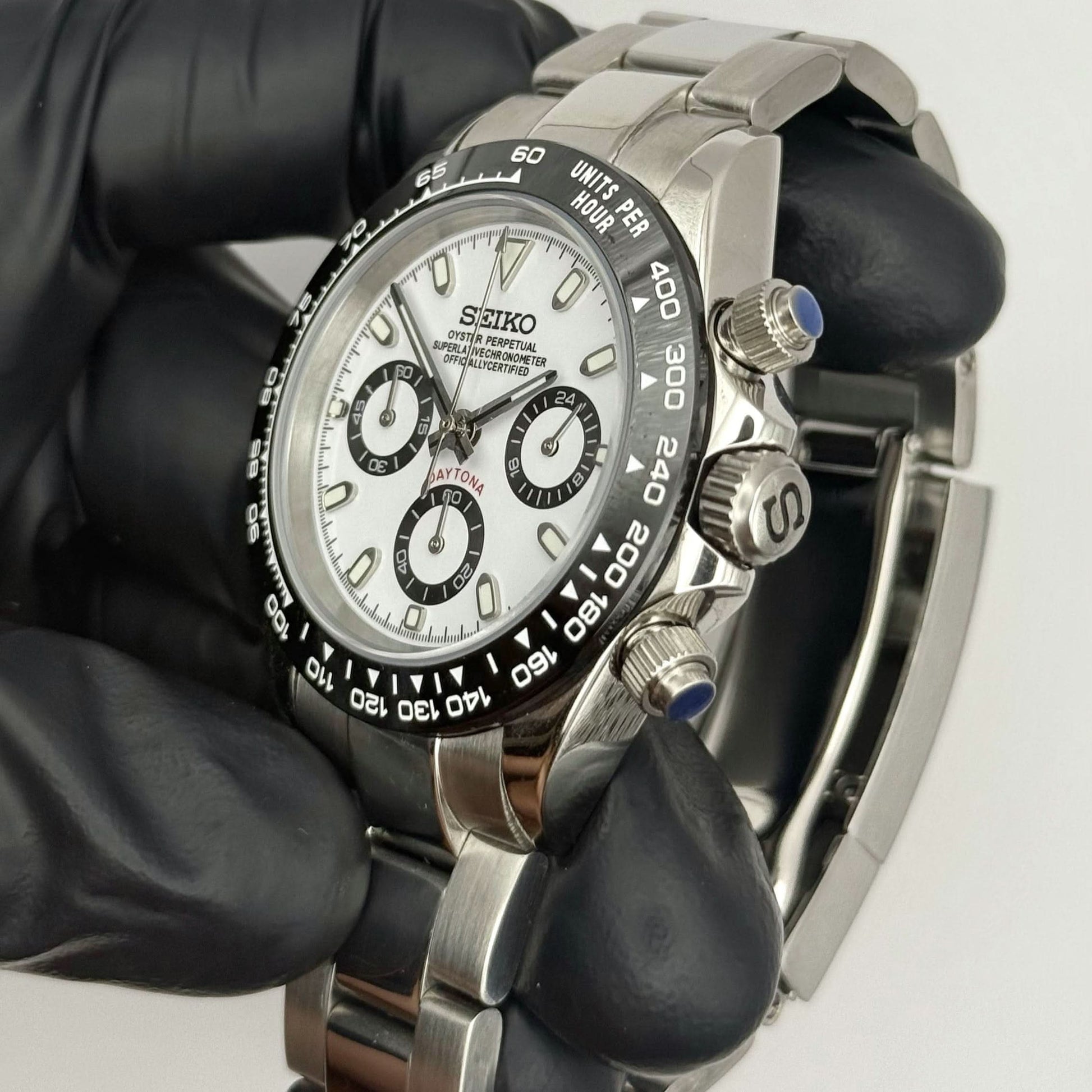 If you change your mind and the watch is unused, you can return or exchange it easily.Inspired by the iconic Daytona design, and featuring the prestigious Seiko VK63 hybrid movement, we present the Seiko Mod Daytona. A 40 mm high-end quality watch combining the perfect alliance between excellence and accessibility.