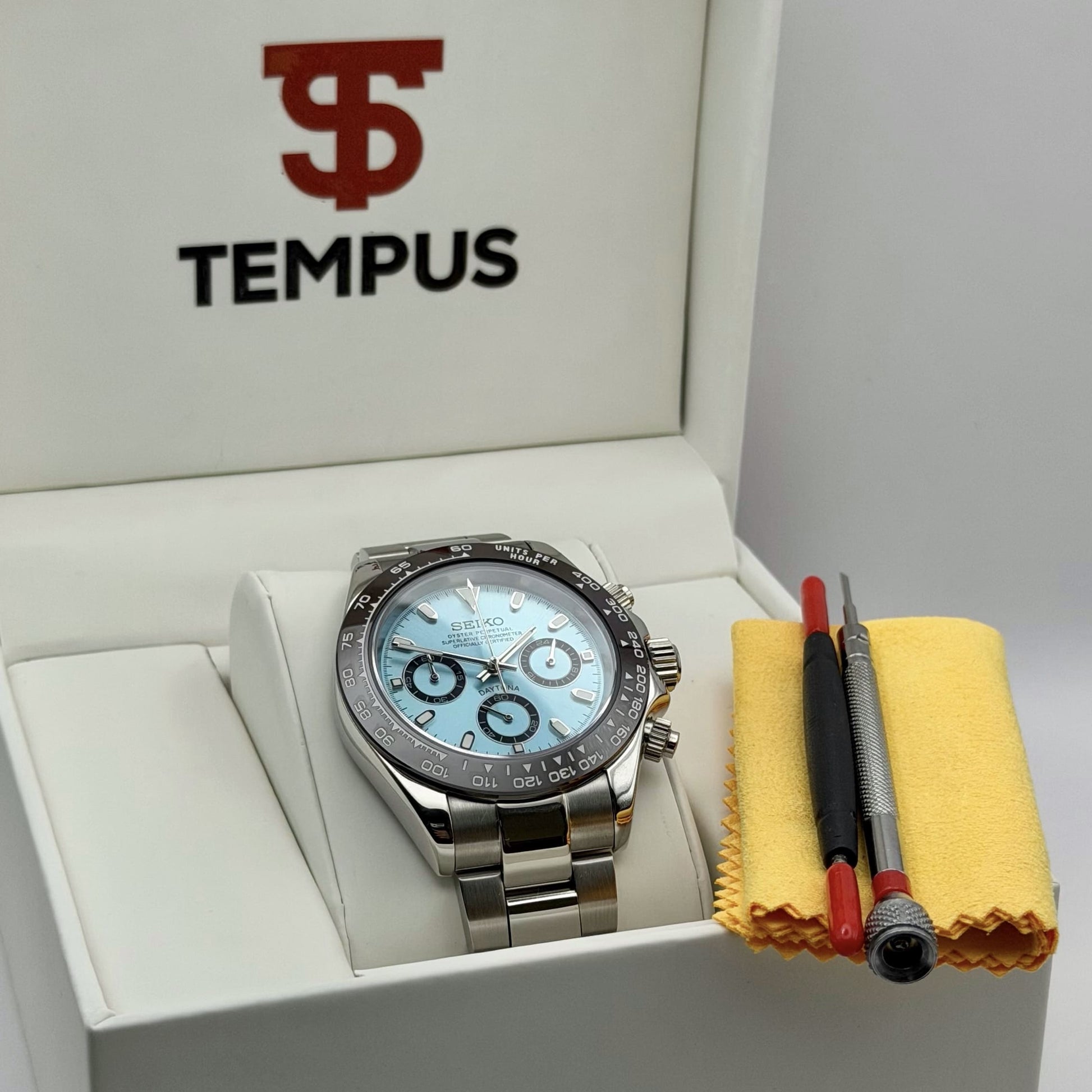 At Tempus, we go beyond watches. Each timepiece comes in a premium custom box with a free adjustment kit for the perfect fit, reflecting our commitment to quality and detail.