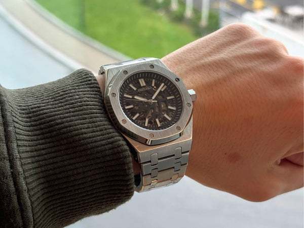 Inspired by the iconic Royal Oak Chronograph design, and featuring the prestigious Seiko VK63 meca quartz chronograph movement, we present the Seiko Mod Royal Oak Chrono. A 41 mm high end quality watch combining the perfect alliance between excellence and accessibility.